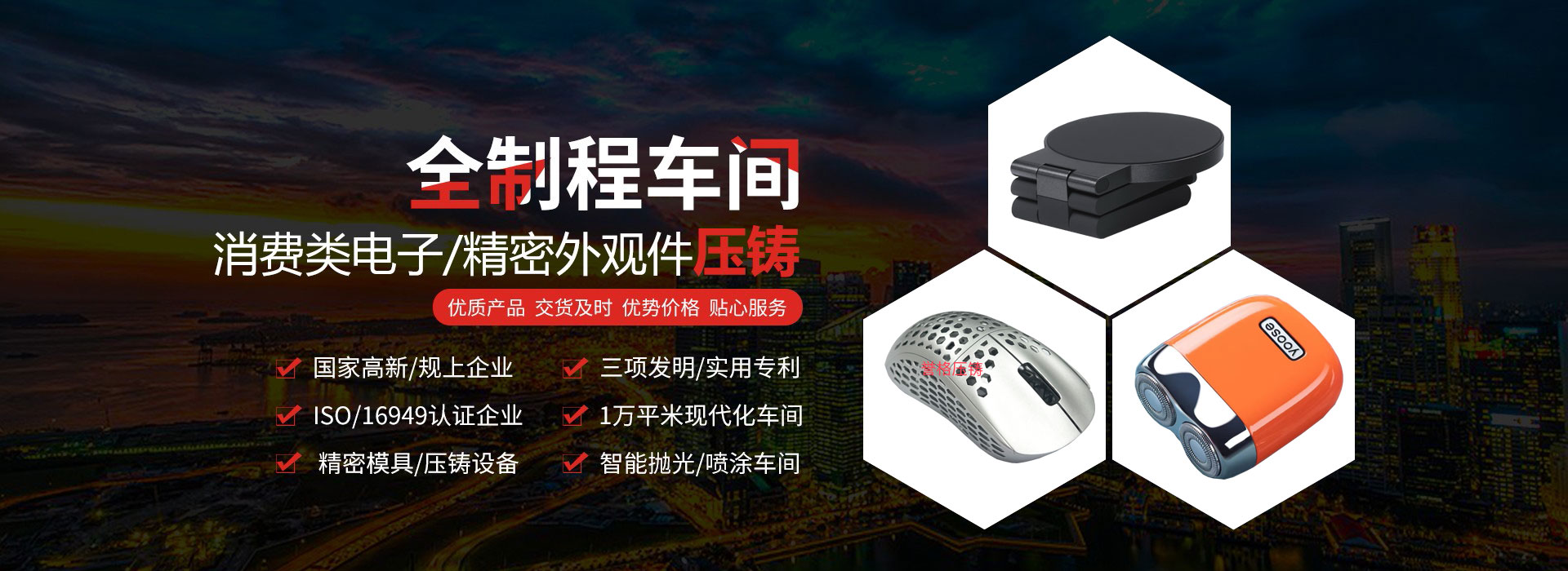 斥巨資構(gòu)建模房、壓鑄、五金沖壓、批鋒、CNC、機(jī)加、拋光、噴油、絲印、移印車(chē)間;一站式配套,品質(zhì)更好,效率更高,交期更快!